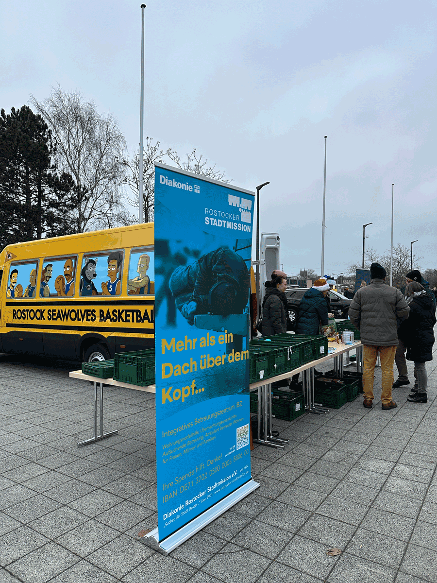 Eine beeindruckende Welle der Hilfsbereitschaft erlebte Rostock beim letzten Heimspiel der Rostock Seawolves im Jahr 2025. Auf Initiative des Rotary Club Rostock, der Stadthalle Rostock, W. Holz Catering und der Rostock Seawolves wurde gemeinsam mit der Rostocker Stadtmission zu einer Spendenaktion zugunsten obdachloser Menschen aufgerufen. Basketballfans waren eingeladen, haltbare Lebensmittel und Hygieneartikel zum Spiel mitzubringen – und folgten diesem Aufruf in großer Zahl.